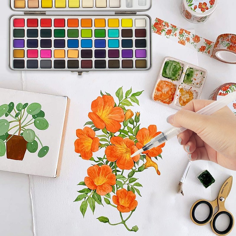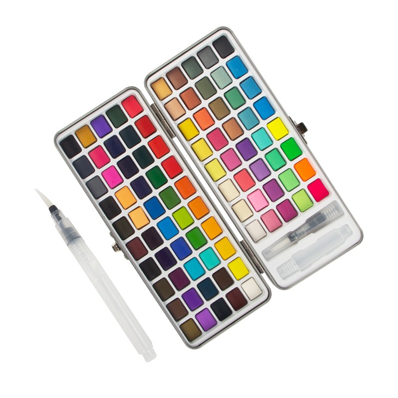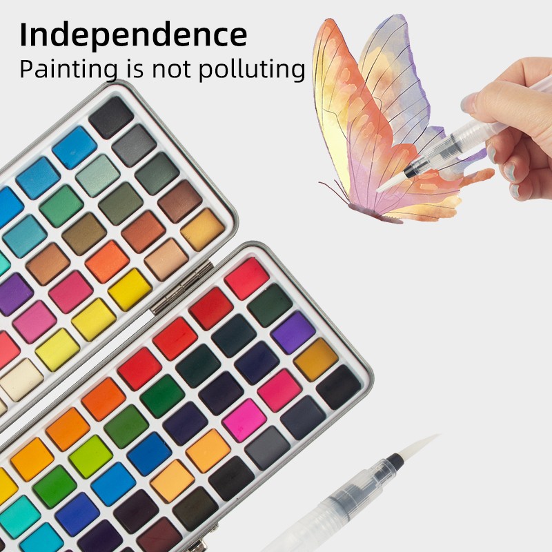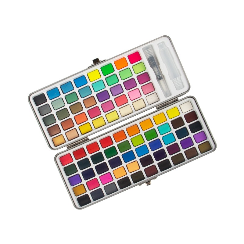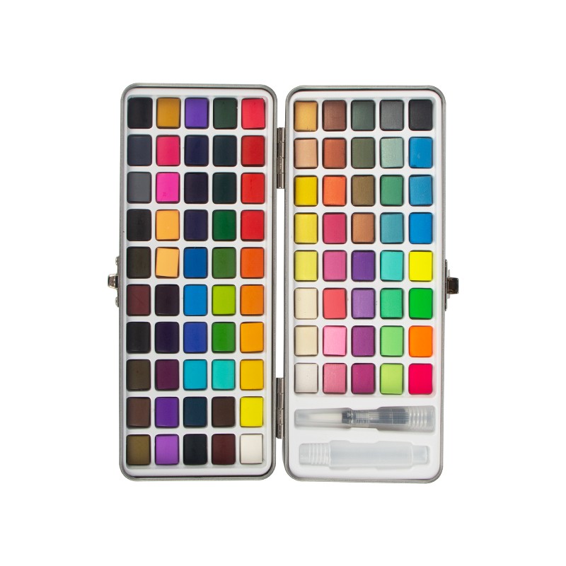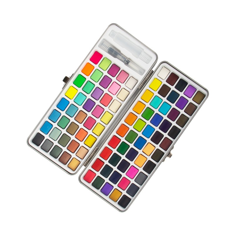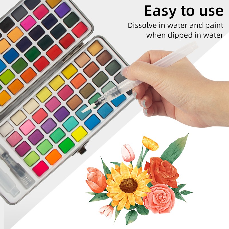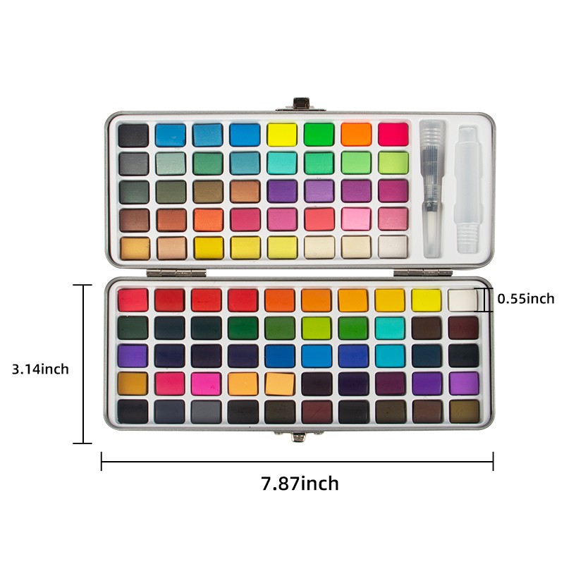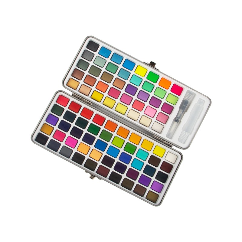 Set de vopsea acuarelă portabil perfect, Set de acuarelă de călătorie Ultimate cu o cutie de transport compactă, dimensiune-3.74*8.26 inch, carcasa metalică robustă nu va ocupa mult spațiu în geantă, ușoară și portabilă. Setul de vopsea cu acuarelă în 90 de culori cu cutie cadou, găzduit frumos într-o cutie cadou, a fost îmbrățișat de numeroși artiști. Indiferent dacă sunt în călătorii sau acasă, în medii rurale senine, parcuri vibrante, plaje cu nisip, grădini luxuriante sau peisaje urbane pline de viață, artiștii își găsesc libertatea de a se răsfăța pasiunii lor pentru pictură oriunde rătăcesc.